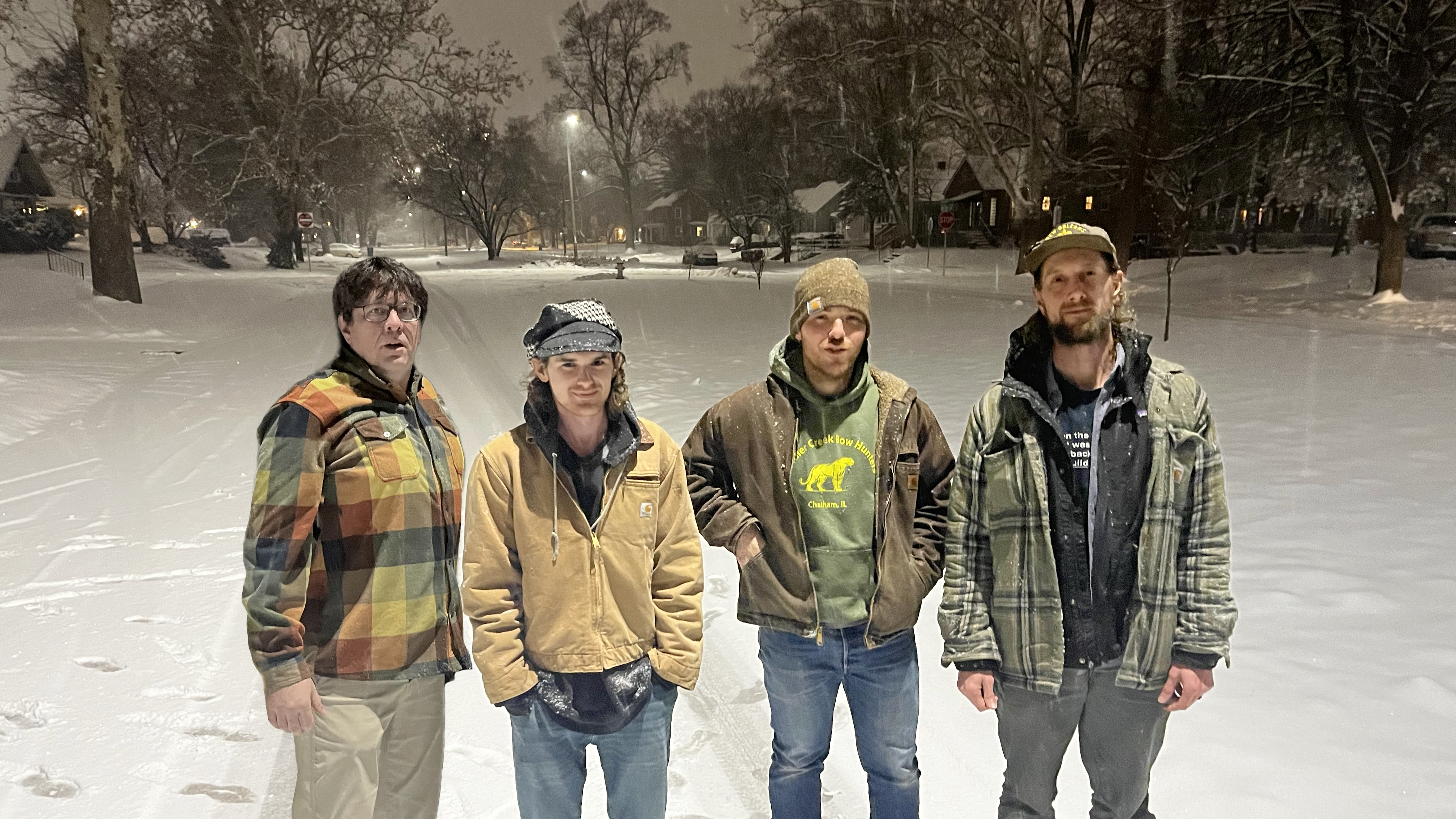 Heavy Delight band standing outdoors on a winter city street